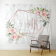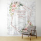 Modern and trendy, this gorgeous wedding tapestry design features a faux copper rose gold geometric embellished with coppery pink watercolor roses and flowers, over a faux white marble texture. The couple's names and some wedding details are in a matching copper colour. Copyright Elegant Invites. All rights reserved.