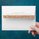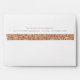 Invitation mailing envelope with an apricot or light copper neutral rose gold glitter stripe on the back flap, and the same sparkly pattern background printed directly inside of the envelope as a faux lining. The rest of the envelope colour can be customised to any colour.