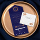 Copper glitter rose wreath on navy blue wedding all in one invitation