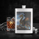 The product is a good size and came exactly as it was pictured. The lid is not attached to the flask, which could be dangerous on drunken nights... The print came out surprisingly well and looks very sharp. Would definitely recommend.