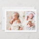 This stylish and elegant 2-sided photo birth announcement card features four (4) photos (front & back) of your newborn baby girl, custom text overlay on the picture that can be personalised, and faux copper gold foliage embellishments. Customise this product by adding your newborn baby's name, pictures, birth record, and the parents' names.
