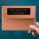 Roaring 20s Great Gatsby Vintage Art Deco Wedding Invitation. A black and copper 1920's inspired card design features faux copper foil fleur-de-lis, beautiful geometric style of Art Deco. Outside: copper gradient background with black shapes for name, address. Use Personalise tool to add your info. See, also, my Copper Black Great Gatsby Art Deco Collection.