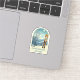 Sticker from a wonderful skiing holiday in the beautiful Copper Mountain, Colorado! This sticker features an arch with a stunning blue-grey mountain landscape and retro ski boards in an orange tribal pattern in the foreground.