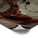 An abstract image based on old copper saucepans hanging on a stone kitchen wall