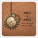 These unique Vintage Clock Save the Date Stickers in dark orange feature antique steampunk clocks and gears hanging by a metal bead chain. The background has a textured paper and mesh overlay which adds a distressed and grungy feel to the design. These quirky and offbeat save the date stickers would be perfect for your steampunk inspired wedding. Easy to customise, simply add your wedding details. Click on the "Customise It" button to find additional personalisation options.
