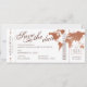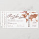 Boarding Pass Save the Date Cards feature an elegant modern map design with a faux copper foil travel theme design. All text and background colours are editable, so you can create your own design using this template for a plane ticket which was designed with a destination wedding or travel theme wedding or vow renewal celebration in mind. Visit the Custom Paper Works designer collection for matching items.