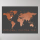 Copper and dark gray world map with optional custom text and moveable heart location marker is beautiful as artwork for a wanderlust, globetrotter, world travel fanatic.
