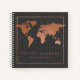 Unique copper world map on editable dark grey background with a simple geometric border for the travel-loving, wanderlust adventurer who has lots of trips to plan and journies to write or draw about. Our map design is elegant, professional and a bit masculine making it perfect for a destination wedding groom or groomsmen gifts for those trekking around the world with you! All text and EVEN the page rules inside can be personalised so it's just right for however you plan to use it. More colour options are available in the Custom Paper Works Zazzle Designer Shop.
