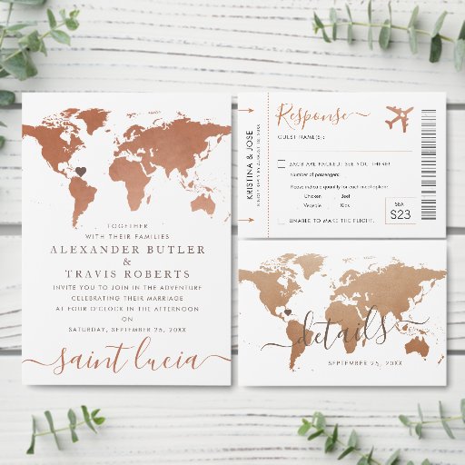 Copper World Map Travel Theme Destination Wedding POSTCARD rsvp WITHOUT ENVELOPES have a masculine vintage look featuring modern typography in antique sienna brown, a perfect enclosure card for a destination wedding or travel theme party invitation with a moveable and removable heart location. The back features space for optional meal selections and fun travel-theme response card wording. Adorable with passport and boarding pass invitations for the wanderlust globetrotter couple or bar mitzvah celebration. Click customise to edit any part of the design to completely match your suite. View the matching collection on this page or use the designer store link to find matching products and other colours available.