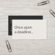 A modern, minimalist business card perfect for copywriters and freelance writers. The front features a soft cream background with the humorous phrase "Once upon a deadline..." in charcoal grey text. The reverse has a dark charcoal background with cream text and space for your contact details. All text on the card is fully editable.
