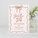This wedding save the date features a feminine coquette bow and a ribbon border for the perfect way to let friends and family know your wedding date.
