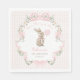 Designed with a soft, vintage watercolor style, this adorable paper napkin features a whimsical watercolor bunny holding a pink balloon, delicate daisies and greenery accents, and elegant blush pink bows wrapped in flowing ribbon. The gentle pastel palette and whimsical layout offer a perfect touch of coquette girly elegance for your celebration.