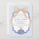 Topping the invitation is a large beige coquette-style bow in a watercolor texture, evoking a soft, romantic, and subtly vintage aesthetic. The bow gracefully drapes over the top corners of the invitation, complementing the overall elegance of the design.