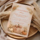 Celebrate a fall milestone with warm harvest elegance and soft rustic charm. This design features a hand-painted heirloom pumpkin resting against a subtle gingham backdrop, framed by an ornate vintage-inspired panel and delicate autumn leaf accents. The warm ivory and burnt orange palette creates a cozy countryside aesthetic that feels refined yet inviting.