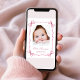 A sweet card to announce the birth of your baby girl featuring her photo in a watercolor frame composed of pink delicate ribbons and coquette bows, blending a minimal aesthetic with a touch of whimsical vintage charm. Her name is showcased in an elegant pink script and her birthday and birth stats are in classic serif typography. On the back, add three additional photos and customise your message to family and friends.