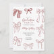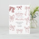 Vintage and coquette graduation party invitation card featuring hand drawn illustration of bows and hearts.
