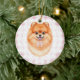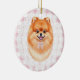 Coquette Brown Pomeranian Dog Pink Gingham Bows Ceramic Tree Decoration