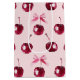 A beautiful hand-drawn illustration of cherries over a pink background, with a pink bow! Very coquette, very cute