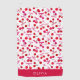 Coquette cherry and bow golf towel; personalise with your own name, initials or choice of text. Please contact me for further customisation if required. Matching items available. Original art from artists own illustrations. Please use the message me button below for help with further customisation and special requests. © Zoe Chapman Design