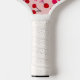 Coquette cherry and bow patterned pickleball paddle with dpink background; personalise with your own name, initials or choice of text to one side. Please contact me for help with further customisation if required. Matching items available. Original art from artists own illustrations. Please use the message me button below for help with further customisation and special requests. © Zoe Chapman Design