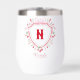 The coquette cherry monogram crest gives this wine tumbler a fun, trendy look that any bride-to-be will love. There is a coordinating cherry crest border.
