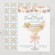 This bachelorette party invitation has a margarita glass with a pink bow and with papel picado banners on top. All the important wedding details can be personalized. The back has a coordinating Mexican tile pattern. Colors include blue, yellow, pink, white and coral.