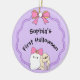 Commemorate your baby’s first Halloween with theis adorable coquette ghost themed ornament. Features a coquette bow frame, adorable ghost holding a sweet bunny, and a photo slot on the back. It’s time for a spooky sweet first Halloween celebration! All elements are editable. You can personalise this design by clicking on "Personalise this template" or if you wish to change the font, colours or arrange the design elements in a different way you can click on "Edit using Design Tool".