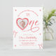 Celebrate your little one’s first birthday with this coquette-inspired heart invitation, featuring delicate pink bows, sweet hand-drawn details, and a romantic Valentine-style design.