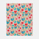 This blanket design is bright and cheerful, featuring a whimsical floral and heart motif in vibrant red, blue, and pink tones against a soft cream background. The repeating pattern is playful and eye-catching, blending stylised flowers with heart shapes to create a romantic and uplifting vibe. A customisable monogram at the bottom allows personalisation with initials, making it an excellent gift or a special keepsake for yourself.