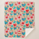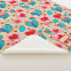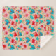 This blanket design is bright and cheerful, featuring a whimsical floral and heart motif in vibrant red, blue, and pink tones against a soft cream background. The repeating pattern is playful and eye-catching, blending stylised flowers with heart shapes to create a romantic and uplifting vibe. A customisable monogram at the bottom allows personalisation with initials, making it an excellent gift or a special keepsake for yourself.