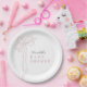 This coquette & cute girl's baby shower paper plate features a long pink bow/ribbon. Personalize it for your needs. You can find matching products at my store.