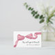 Pretty bow-themed business card with a pretty bow and ribbon in a soft shade of pink with black fonts. The girly design is perfect for a profession in the beauty industry or pageant industry. Add a url to the QR code so people can scan it with their smartphones and easily find your online presence.