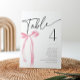 Coquette Pink Bow Table Number Cards for a "She's Tying the Knot" themed Bridal Shower.