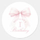 Coquette Pink Bow First Birthday Classic Round Sticker