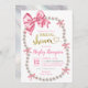 Coquette Pink Bow Pearls Bridal Shower Invitation