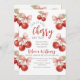 Coquette Pink Bow Red Cherry on Top Baby Shower Invitation