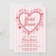 Set the stage for a love-filled celebration with this romantic Valentine-inspired bridal shower invitation. Featuring soft pink stripes, a bold heart frame, dainty bows, and playful swirls of hearts, this coquette-style design is perfect for honoring the bride-to-be in sweet, feminine style.