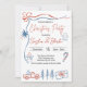 Celebrate the holiday season in style with this rustic yet playful Christmas party invitation. Featuring a charming red and blue colour palette, this design includes festive illustrations such as a vintage red truck, Christmas trees, candy cane, gingerbread man, snowman, and wrapped present. Hand-drawn accents and modern calligraphy fonts create a cheerful balance of cosy and fun, perfect for holiday gatherings with friends, family, or coworkers. Personalise with your party details for a custom touch and spread Christmas cheer with an invitation that stands out.