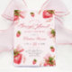 The Coquette Strawberries Baby Shower Invitation Card is a delightful blend of charm and elegance, perfectly capturing the joy of celebrating a baby girl’s arrival. The design features a stunning watercolor illustration of ripe red strawberries, their vibrant hues symbolising the sweetness of new beginnings. A delicate pink bow adds a touch of coquette charm.