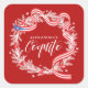 Coquito label with a Christmas wreath and Puerto Rican flag ribbon.