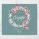 Coquito label with a christmas wreath and puerto rican flag ribbon.