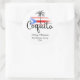 A Coquito Merry Christmas round sticker with a Puerto Rico Flag and palm tree design. It's a festive sticker you can use for your coquito holiday party decorations or for holiday gifts.