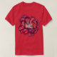 I give wanted to give this a 4 instead of a 5 because these Basic DARK T0shirts run unexpectedly SLIM or Narrow. Which is great if you do not have a potbelly, but I have a paunch. It isn't the shirt's fault that I've got a beer belly. The design and shirt itself is a quality cotton shirt. The color is more of a deep purple, but still a very pretty color. The Basic DARK T-shirts run a bit SLIMMER than the Basic Ts. The neck is a fraction narrower (or seems to be narrower) also. I'm a paunchy middle-aged woman and my neck is 12 inches (31cm) thick and the neckline fell about the same as in the photo of the man, and I had the desire to tug it a bit. So if you're a thick necked man or like loose shirts, be aware these are slimmer shirts. Once I get rid of my lockdown paunch it'll look great. The shirt washed well in cold water with no apparent bleeding. We don't have a dryer, so it hung dry. Did not shrink. Love the colors and the design. The design looks smaller on my shirt than it does on the model on-line. But still, it looks good on the shirt. The printing looks as it does on the model, just the size seems fractionally smaller. Washed garment in cold water, hung dry and design appeared unaffected.