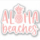 Get ready for summer with this cute beach inspired sticker that's perfect for anyone who loves island style! Cute design features the quote "aloha beaches" with a tropical pineapple fruit illustration standing in for the letter O.