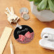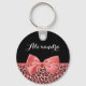 A chic coral and black jaguar print keychain with a girly light red ribbon tied into a cute bow. Personalize this trendy animal print design by adding the name of your teen girl. Flat printed image, not actual bow.