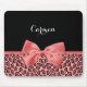 Coral and Black Jaguar Print Cute Bow With Name Mouse Mat
