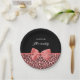 Chic coral and black jaguar print paper plates with a girly light red ribbon tied into a cute bow. Personalise this trendy animal print design by adding the name of your teen party girl. Flat printed image, not actual bow.