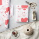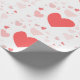 A cute, repeating seamless pattern featuring a dense field of scattered hearts in shades of coral and blush pink on a white background. Ideal for Valentine's Day.
