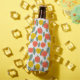 This bottle cooler has a Scandinavian design of flower and leaves scattered about in coral, gold, and sage green.