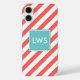 Coral and Mint Diagonal Stripes Monogram Case-Mate iPhone Case